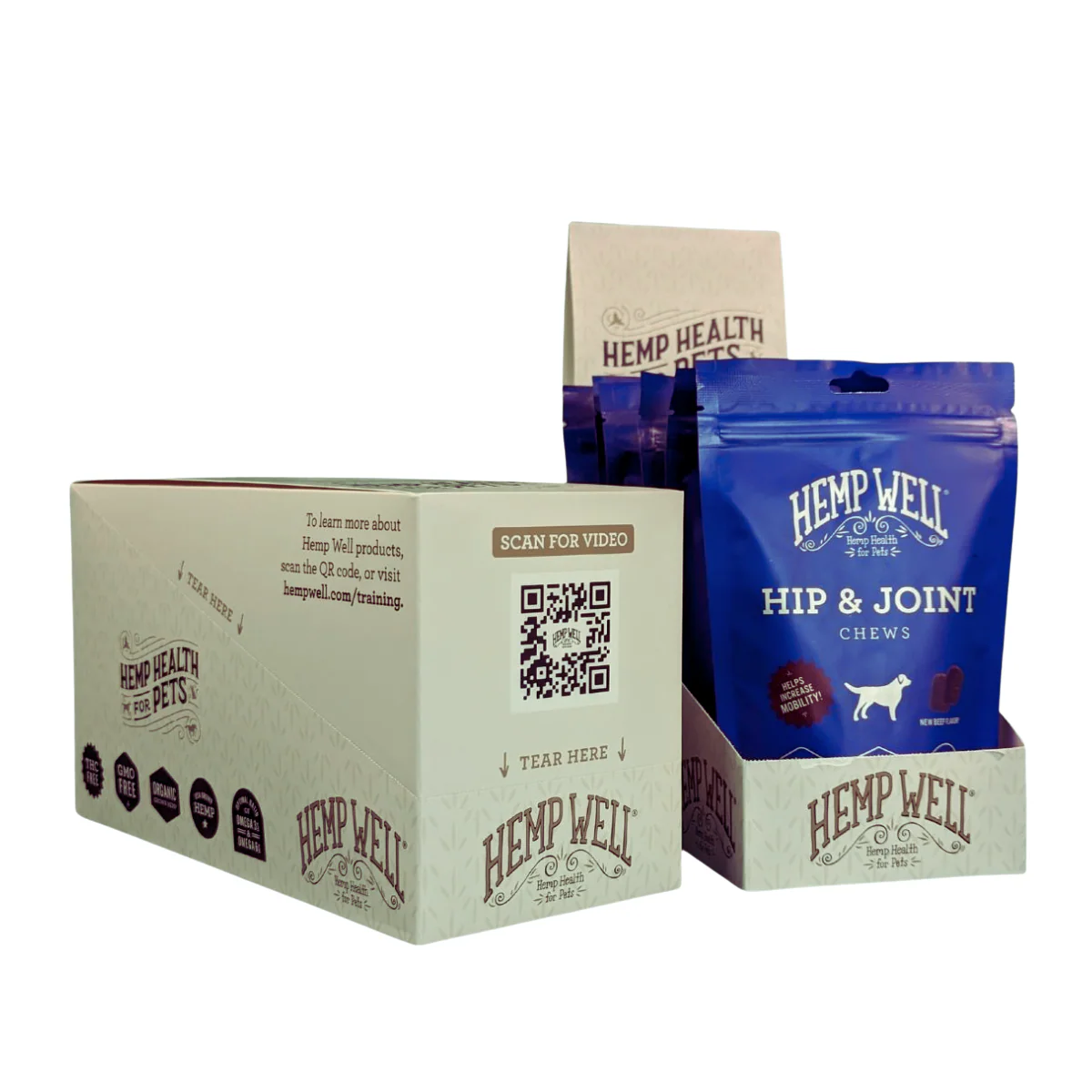 This shipper display holds 12 units and is designed to draw attention to calming products in-store while naturally upselling shoppers into the larger-size formats in the full line. It’s ideal for travel and trial packs—an easy entry point for dog parents who want to test results before committing to a bigger jar.